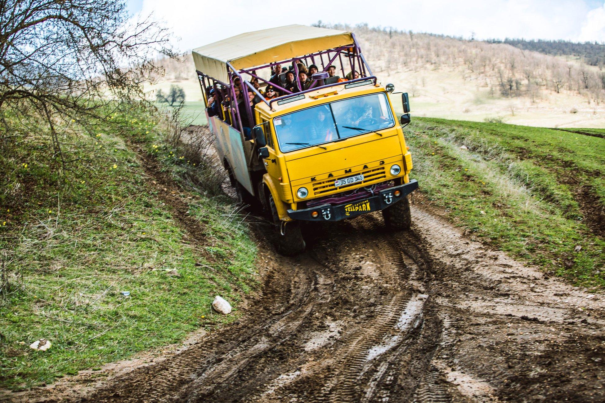 The off road is a 40 minute tour on a giant 18 seated truck, during which many difficulties and obstacles are being overcome